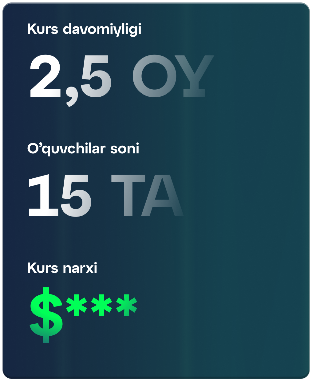 Kursga yozilish uchun anketani to'ldiring