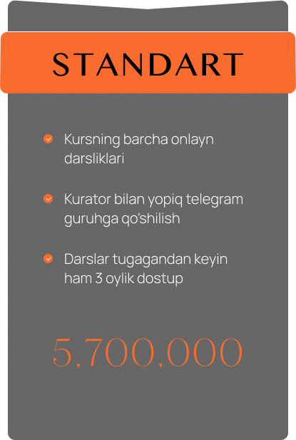 Formani to'ldiring va kursga birinchilardan bo'lib ro'yxatdan o'ting